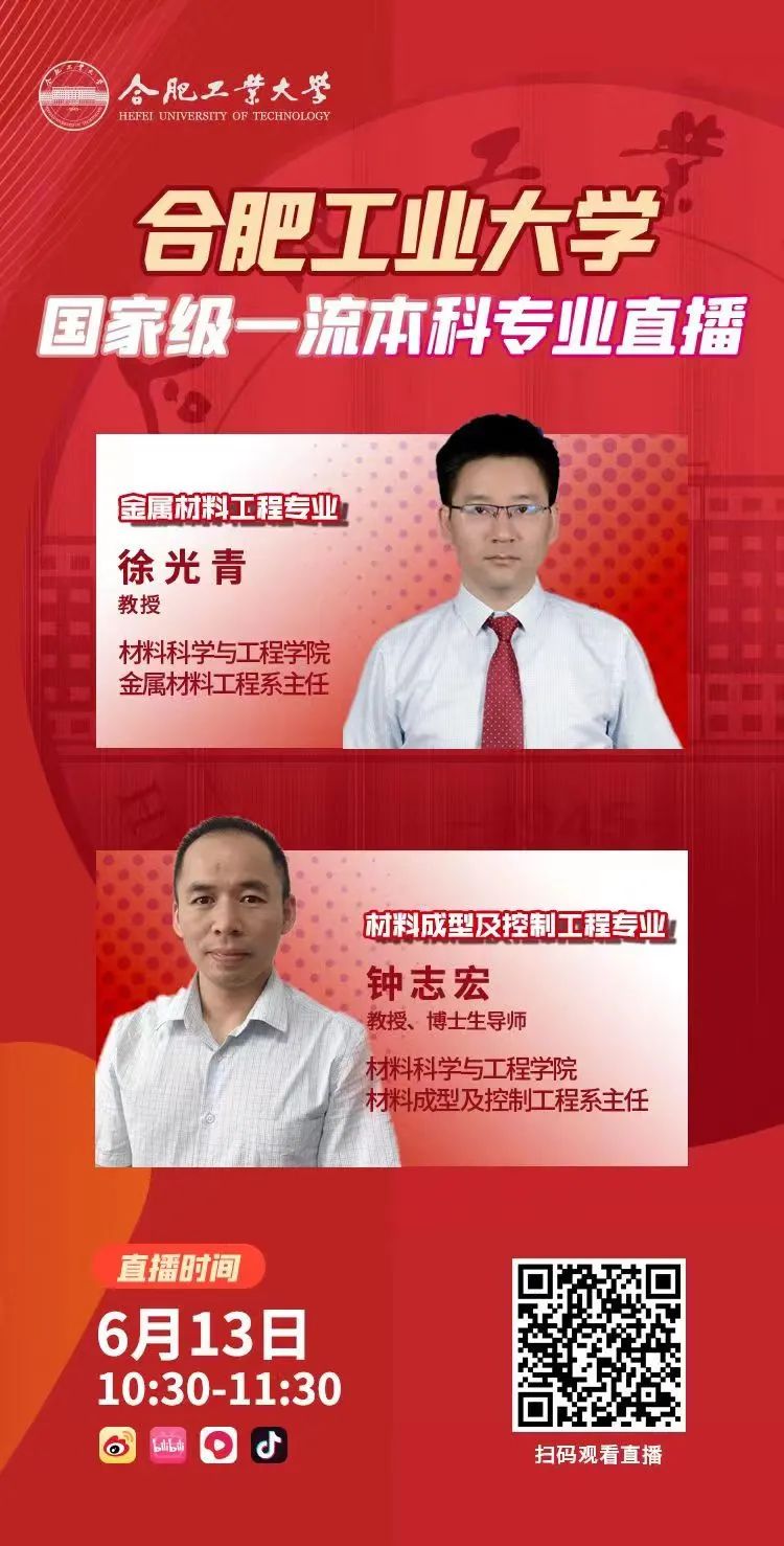 合肥工业大学国家级一流本科专业直播—金属材料工程、材料成型及控制工程链接