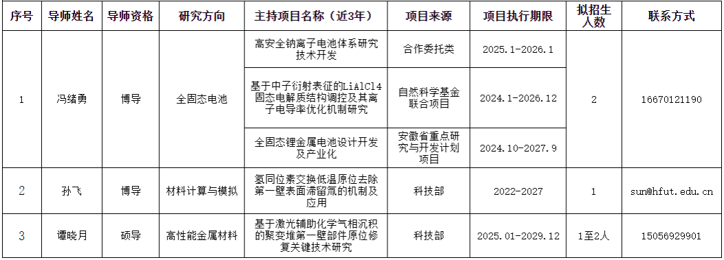 5.本科专业要求:本科专业为材料科学与工程、金属材料工程、无机非金属材料工程、粉体材料科学与工程、新能源材料与器件、材料物理、材料成型及控制工程等材料类及紧密相关专业。