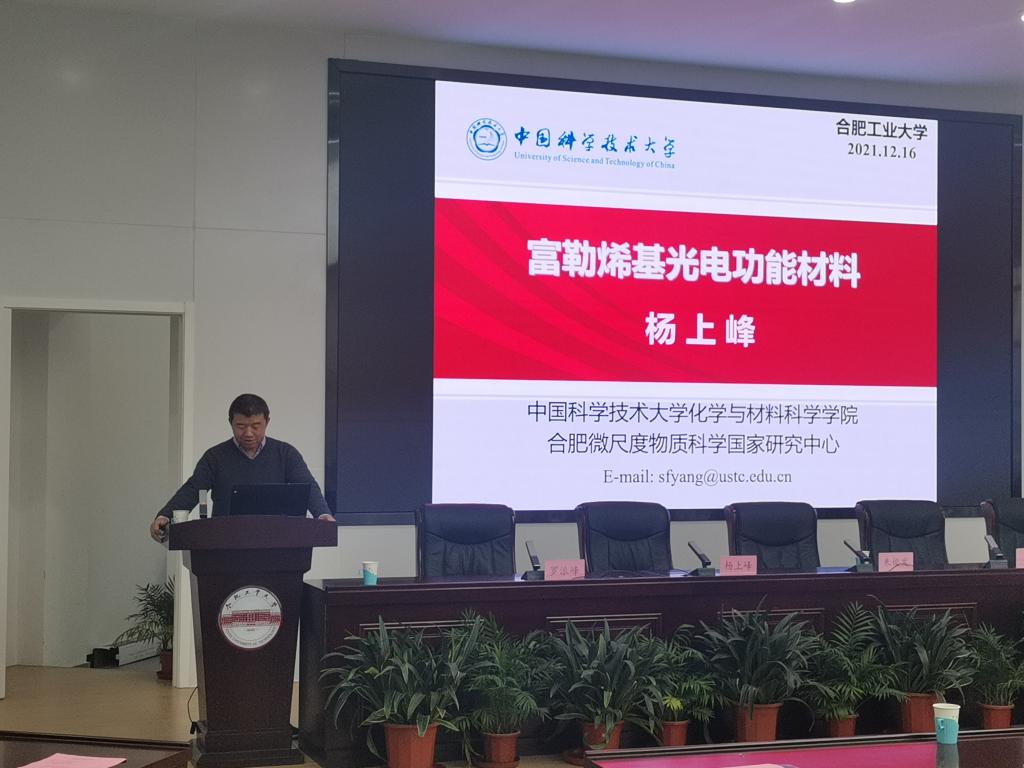 12月16日上午,材料学院举办研究生学术交流年系列报告会,国家杰出青年基金获得者、英国皇家化学会会士、中国科学技术大学杨上峰教授应邀,为师生带来一场题为“富勒烯基光电功能材料”的学术报告,学院党委书记吕珺主持会议。