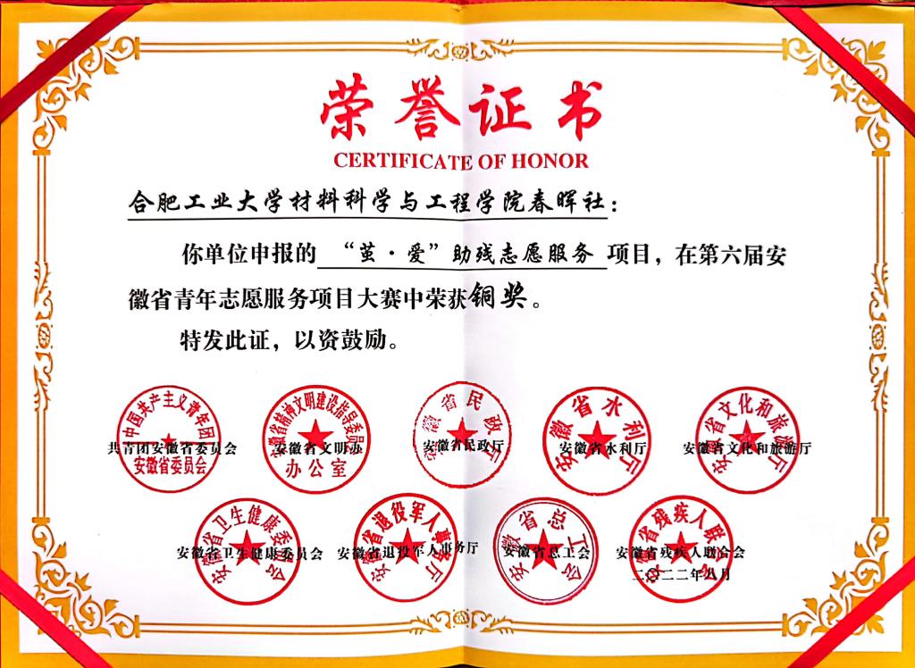 近日,第六届安徽省青年志愿服务项目大赛暨志愿服务交流会落下帷幕,开云官方官网登录入口“茧·爱”助残志愿服务项目荣获大赛铜奖。