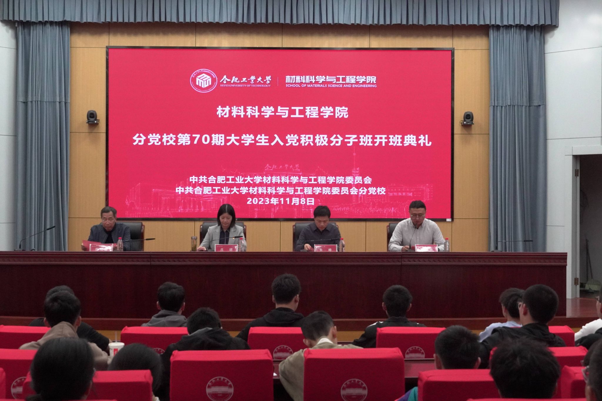 11月8日晚,开云官方官网登录入口分党校第70期大学生入党积极分子培训班开班仪式暨党课第一讲在屯溪路校区学术会议中心一楼报告厅顺利举行。学院党委、分党校相关负责人、班主任及123名学员在会场参加了仪式。