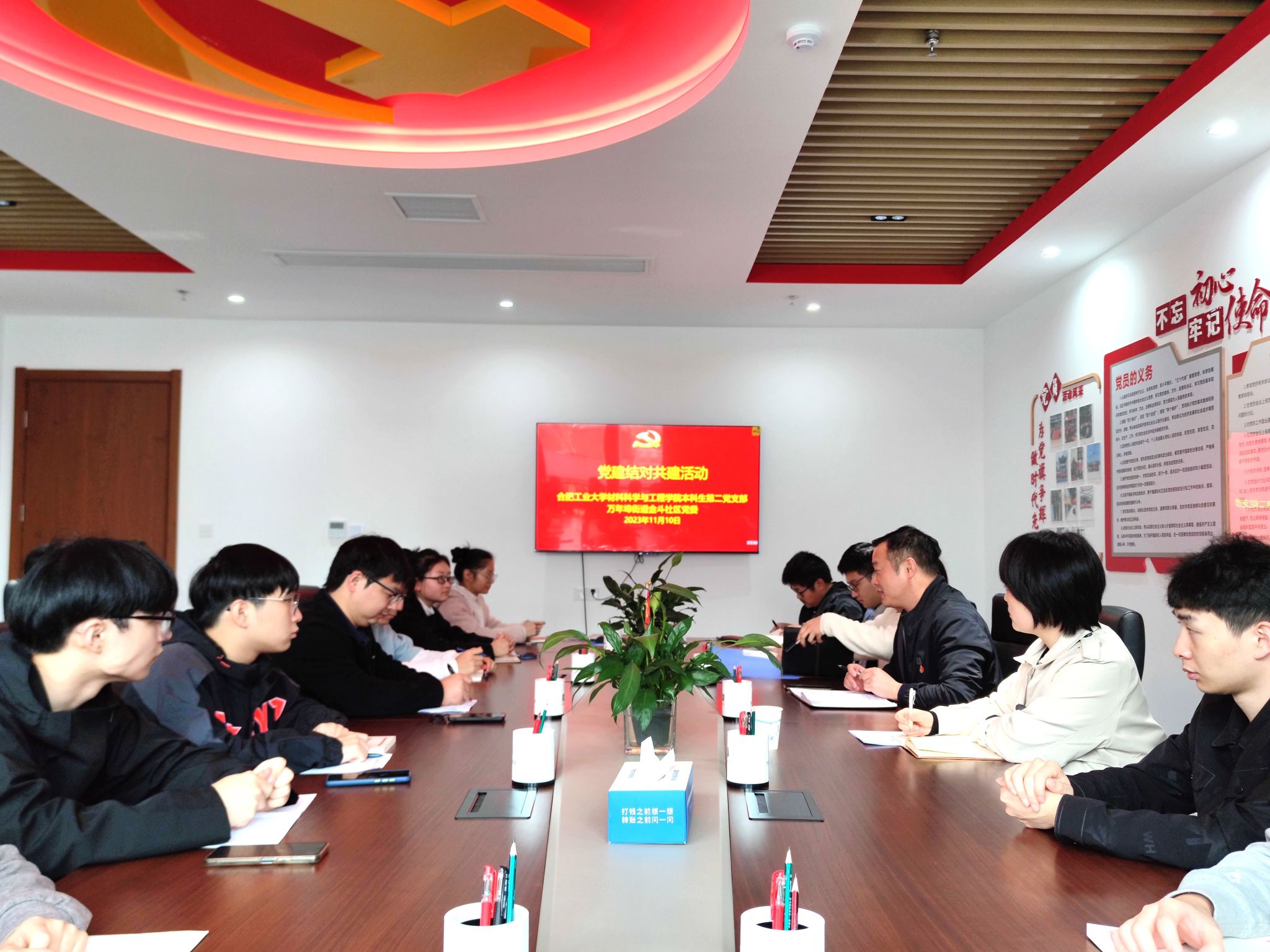会上,王相全代表金斗社区党委对开云官方官网登录入口对基层社区工作的大力支持表达了感谢。他介绍了金斗社区党委基本情况、组织架构、运行机制和特色工作。他希望共建双方能坚持“资源共享、优势互补、注重实效”的原则,通过共建活动平台、分享工作资源、交流工作经验、解决实际问题等途径,不断提高基层党组织的政治功能组织力。本科生第二党支部书记马贤峰从支部基本情况、组织架构、样板支部建设思路、支部特色和取得成效等方面介绍了支部情况,期待双方围绕组织体系建设、运行机制建设、活动载体建设和工作保障建设等方面,整合各种资源,调动各方力量,构筑上下互通、左右联动的党建工作网络体系,实现组织联结、党建互通、共解难题、共同发展。