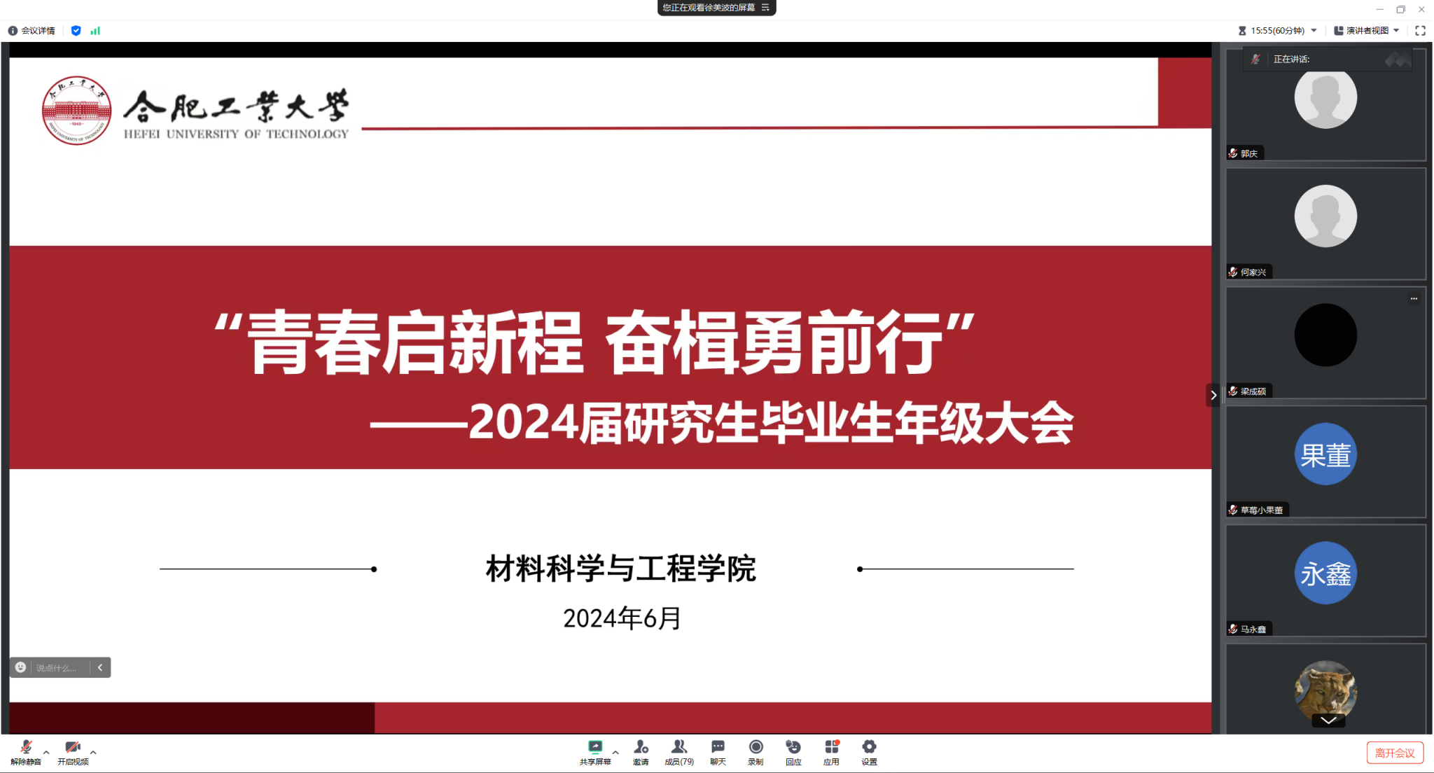 6月5日,材料学院学院召开“青春启新程,奋楫勇前行”主题毕业生年级大会,研究生辅导员和全体2024届毕业生线上参加。