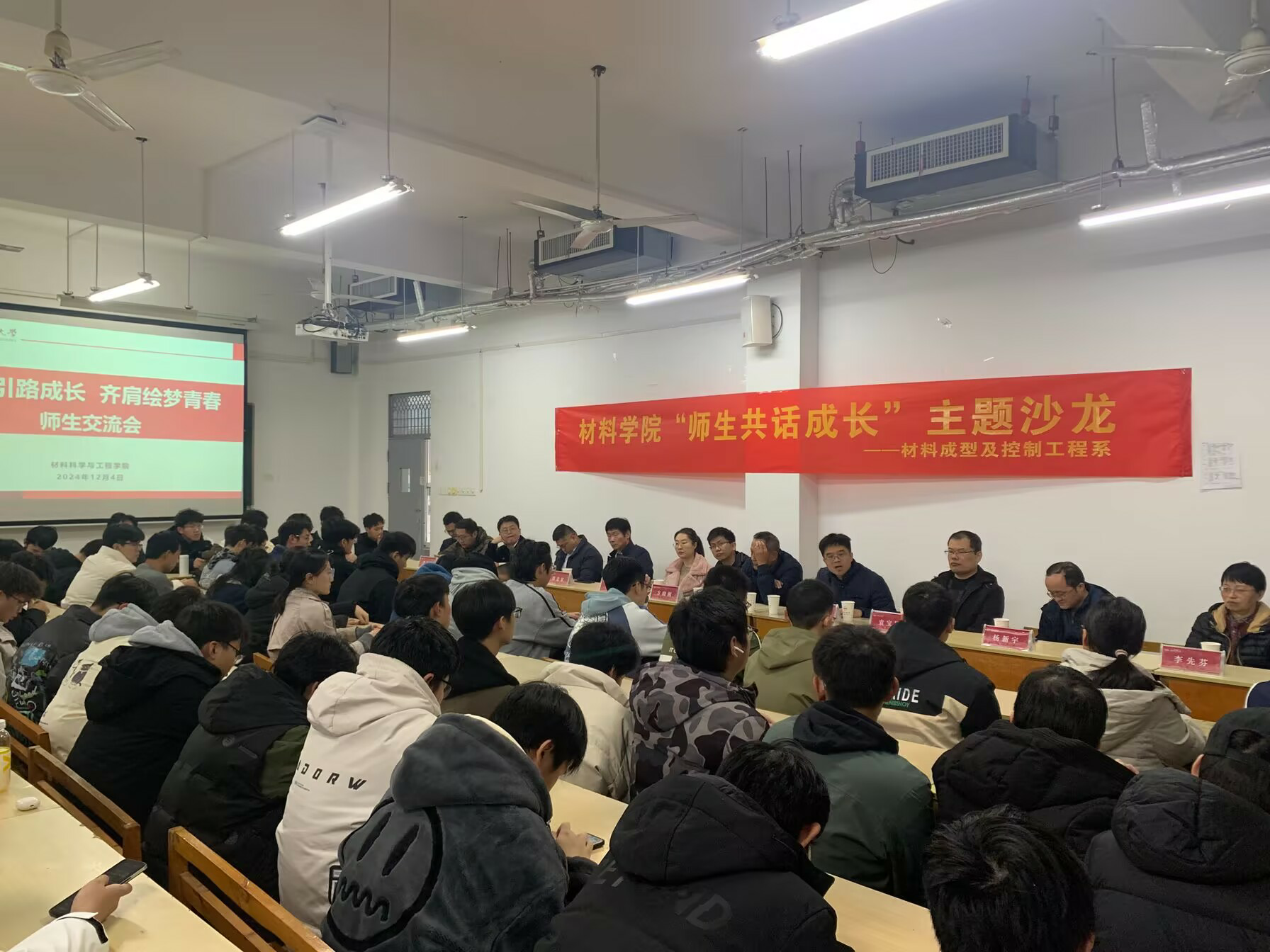 12月4日下午,开云官方官网登录入口在翡翠湖校区翠三教409举办“师生共话成长”主题交流沙龙。学院材料成型及控制工程系教师代表、材料成型及控制工程专业2024级全体同学参加本次沙龙。