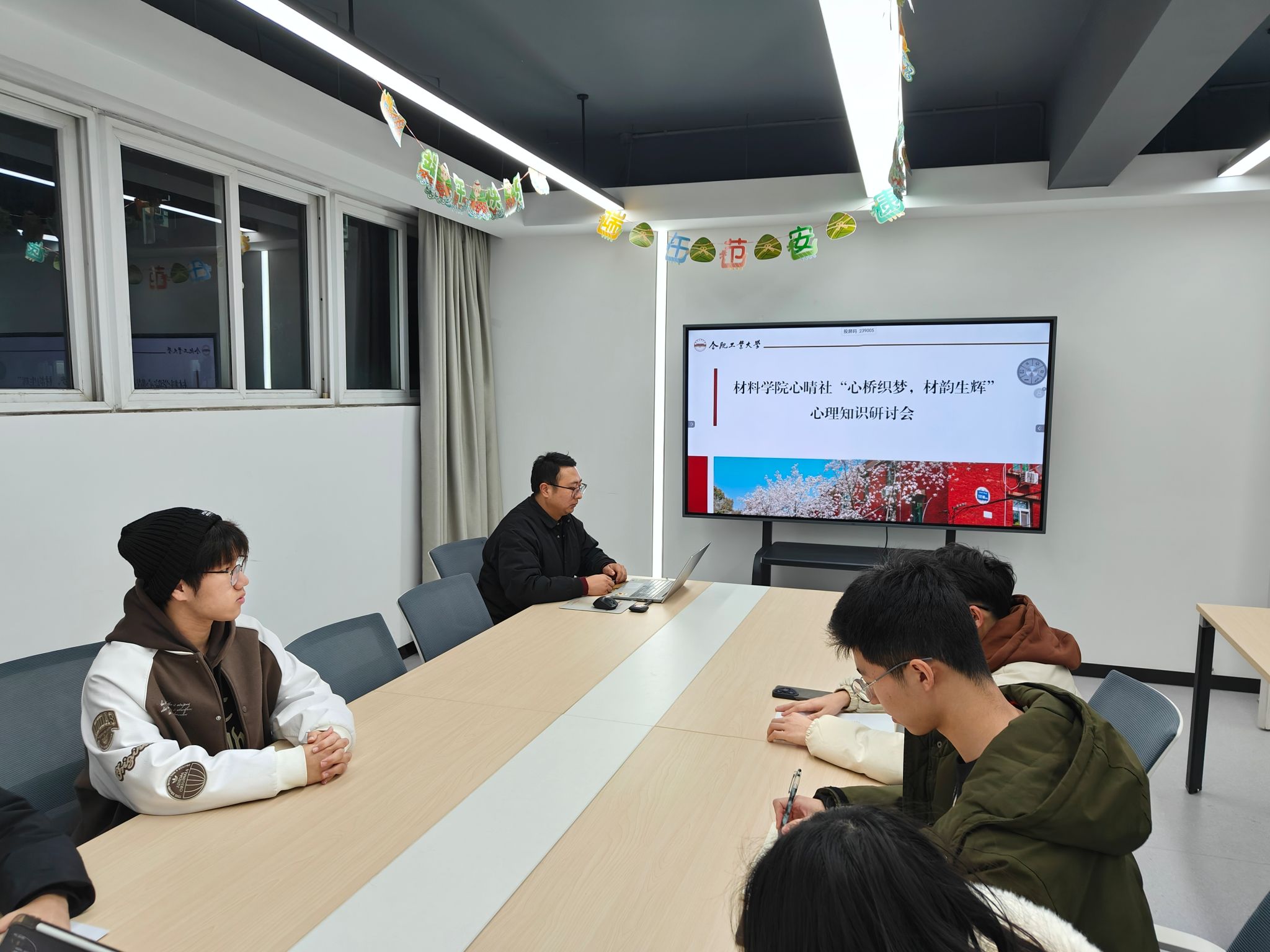 为深入学习心理学知识,12月31日晚,材料学院心晴社大学生心理工作室于翡翠湖校区四号宿舍楼学生社区会议室开展了主题为“心桥织梦,材韵生辉”心理知识研讨会,材料学院心晴社的6位同学和学院辅导员参与了本次活动。