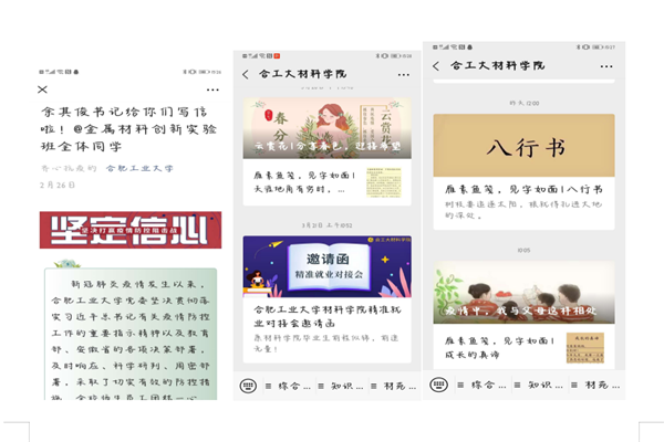 面对互联网时代的疫情防控和思想引导,学院积极发挥网络和新媒体阵地作用,策划一系列抗疫主题栏目,高频度、高质量推出网文、科普知识、法律知识、心理知识以及学生乐见的网络歌曲、漫画、家书等内容形式,利用哀悼日、国家安全日等重大纪念日积极引导学生言论和行为。辅导员、班主任和任课教师全员合力,通过线上主题班会、小班辅导、课程思政等多种形式,帮助学生提升科学素养、做到明辨是非、坚定理想信念,做到全方位、全过程、全覆盖。其中,校党委书记余其俊书记给所联系的17级金创实验班同学的一封信,在校内外和师生中引起强烈反响,极大地鼓舞了全院师生。