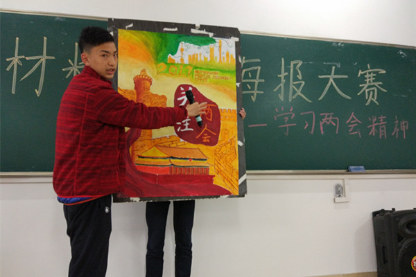 活动旨在通过海报的形式,让更多的青年学生能主动关注和了解“两会”,学习两会精神,激发其对政治时事的热情和关注度,引导学生认真学习、积极实践,主动投身社会主义建设事业。