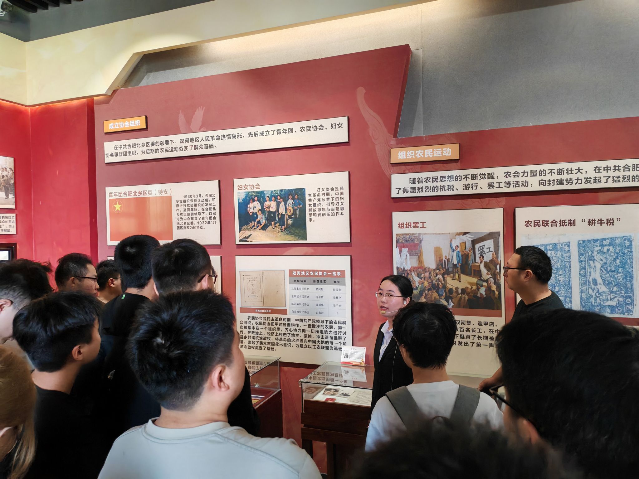在讲解员引导下,学员们通过馆内珍贵的历史图片、文献和实物,深入学习了合肥地区首个党组织——中共合肥北乡支部的创建历程。1926年成立的北乡支部,作为合肥革命的"火种之源",在崔筱斋等革命先辈的领导下,组织农民运动、传播进步思想,为合肥地区革命斗争奠定了重要基础。学员们驻足于"星火北乡""燎原江淮"等主题展区,聆听革命烈士浴血奋战的感人事迹,感悟"信仰如磐、忠诚担当"的红色精神。