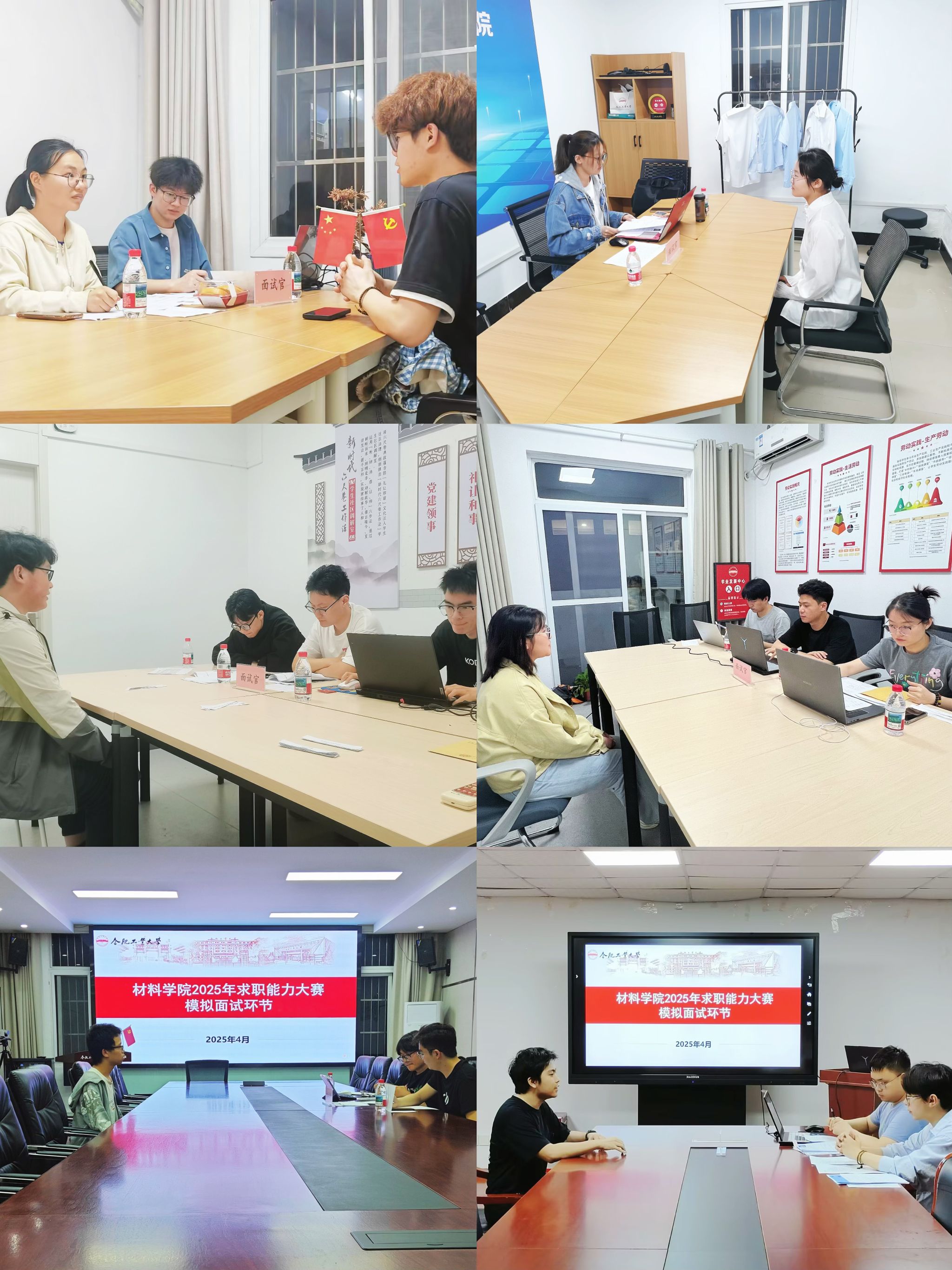 决赛特邀学院材料成型与控制工程系宋奎晶副教授、金属材料工程系潘亚飞副教授、材料物理及新能源材料与器件系宋晓辉副教授担任深造组评委;邀请晶合集成电路股份有限公司招募主任管理师夏邦栋、合肥新东方大学事业部招聘负责人赵宣臻担任就业组评委,联动“校企双导师”分别开展深造组和就业组决赛。深造组重点考察参赛选手科研潜质与学术思维,设置理论基础考察、科研经历介绍、英文问题问答等环节;求职组则通过结构化面试、无领导小组讨论等真实场景,着重评估选手职业匹配度与问题解决能力。最终张译文、宁紫奥等5人获得一等奖,何婷、田志等6人获得二等奖,徐崇高、王宇航等6人获得三等奖。