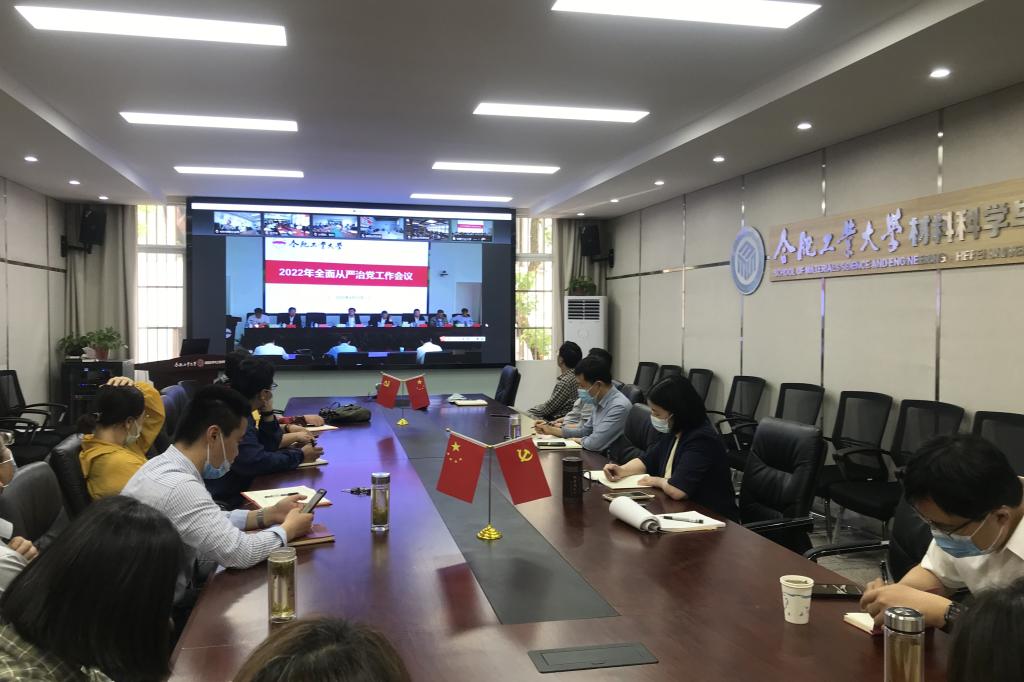4月22日下午,学校召开2022年全面从严治党工作会议,深入学习贯彻习近平总书记在十九届中央纪委六次全会上的重要讲话精神,以及十九届中央纪委六次全会、2022年教育系统全面从严治党工作视频会议、安徽省十一届纪委二次全会精神,回顾总结学校2021年全面从严治党工作,分析研判当前面临的形势任务,部署安排2022年全面从严治党重点工作。校党委书记余其俊作全面从严治党工作报告。校长梁樑主持会议。学院在材料学院综合服务中心210会议室设置线上视频会议分会场,学院副处级领导干部、党委委员、纪委委员、各教工党支部书记及党支部纪检委员参加视频会。
