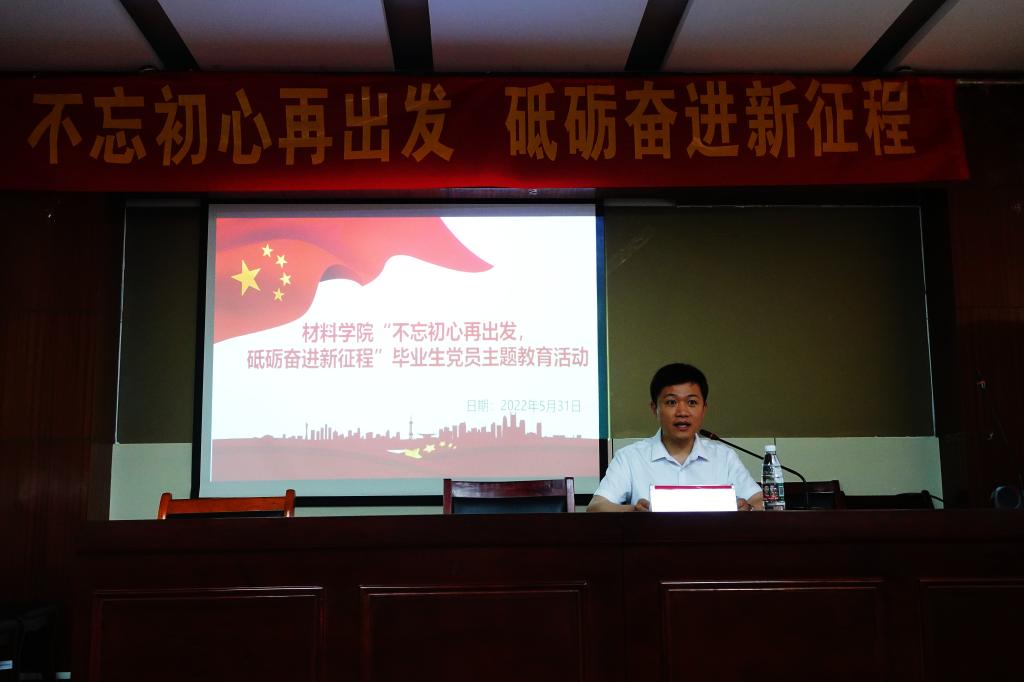 为加强毕业生党员教育,增强毕业生党员廉洁自律意识,扎实做好毕业生离校工作,5月31日下午,材料学院在材料楼601开展“不忘初心再出发,砥砺奋进新征程”最后一次党课主题教育活动。学院党委负责人及全体党员同学参加此次活动。